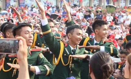 TPO - Đường Nguyễn Hữu Cảnh (phường Sài Gòn, TPHCM) "khoác áo mới' với những bức tranh tái hiện các khối diễu binh mừ