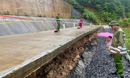 Mưa lớn gây sạt lở tuyến ĐT601 khiến mặt đường cao tốc La Sơn - Hòa Liên cạnh đó xuất hiện vết nứt dài hàng chục mét,