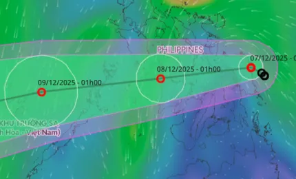 Dự báo trong đêm mai 8.12, áp thấp nhiệt đới từ vùng biển Philippines đi vào Biển Đông nhưng chưa có khả năng sẽ mạnh