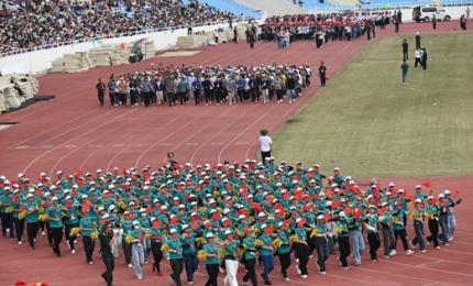 Hình ảnh chàng 'sĩ quan lục quân' quê Thanh Hóa và 'nữ dân quân' nắm chặt tay nhau ở điểm hợp luyện diễu binh được ch