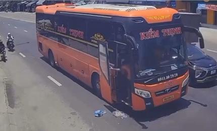 Chiếc xe khách dừng lại giữa đường, phụ xe nhảy xuống, cầm gậy định tấn công một người đi xe máy nhưng được đồng nghi