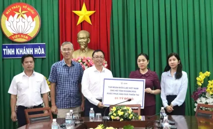EVN hỗ trợ 1 tỉ đồng đến Ủy ban MTTQ Việt Nam tỉnh Khánh Hòa nhằm giúp người dân khắc phục hậu quả sau đợt mưa lũ lịc
