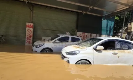Sóng phủ vỉa hè bờ sông Hàn Đà Nẵng, bọt bắn tung trắng xóa