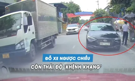 Bất chấp đường tỉnh lộ đông đúc, tài xế vẫn liều lĩnh lái xe ben phóng nhanh vượt ẩu, thậm chí liên tục thúc còi inh