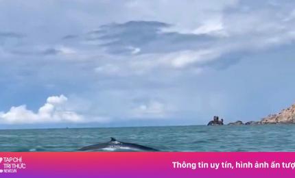 Hai ngày qua, một cá Ông (cá voi) to lớn bất ngờ xuất hiện tại vùng biển Cổ Thạch, huyện Tuy Phong, Bình Thuận, thu h