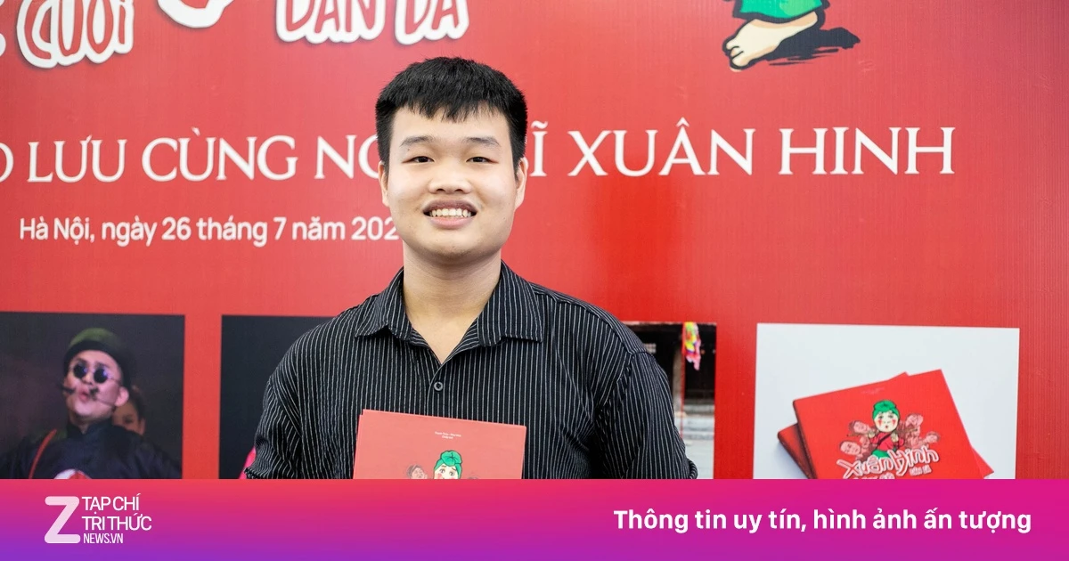 Tại buổi ra mắt cuốn sách "Kẻ chọc cười dân dã" của nghệ sĩ Xuân Hinh tối 26/7, giữa hàng trăm khán giả, một gương mặt trẻ xuất hiện. Đó là thầy giáo vật lý Hoàng Gia Chính.