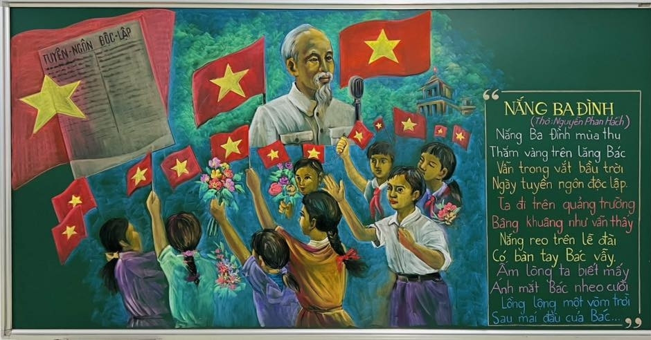 Hướng đến kỷ niệm 80 năm Cách mạng Tháng Tám và Quốc khánh 2/9, thầy giáo Nguyễn Trí Hạnh ở Nghệ An đã dùng phấn vẽ nên nhiều bức tranh đẹp mắt về Chủ tịch Hồ Chí Minh và các chiến sĩ cách mạng.
