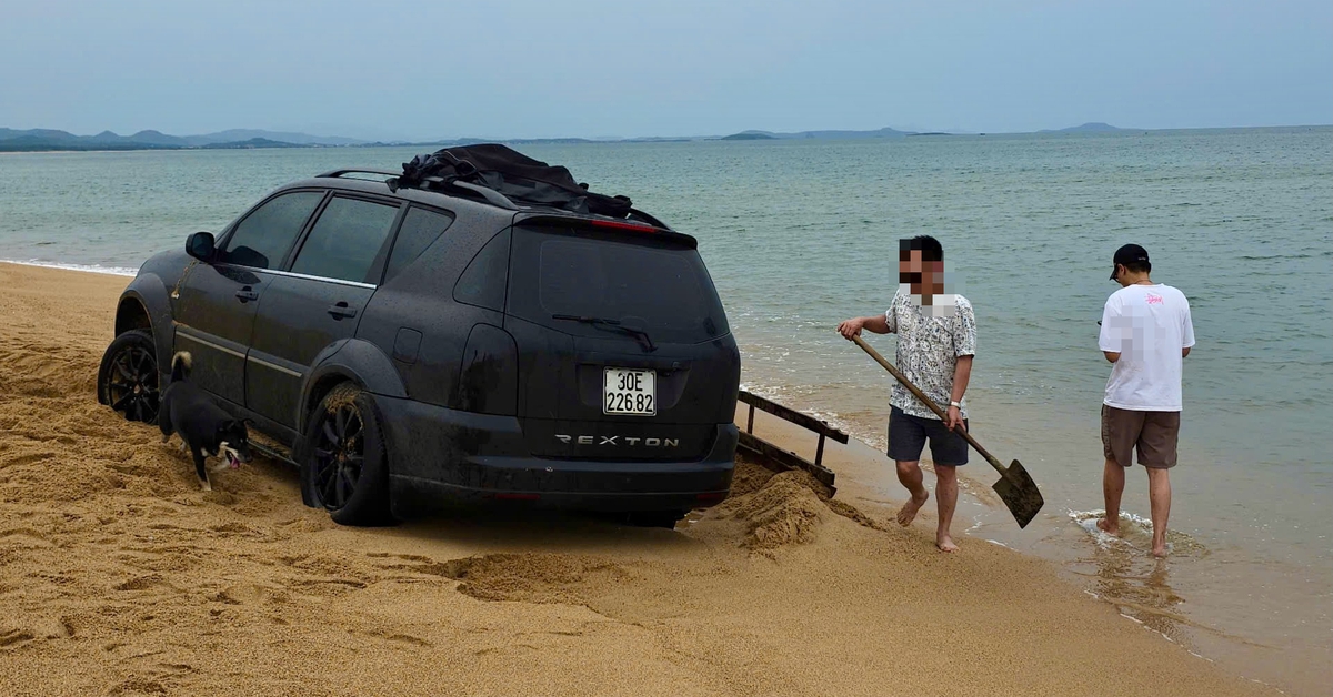 Tại bãi biển phường 4, TP Tuy Hòa (Phú Yên) lại tiếp tục xảy ra trường hợp 1 xe hơi chạy trên bãi biển rồi lún cát mắc cạn, phải nhờ cứu hộ.