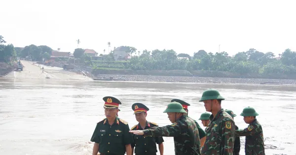 TPO - Ngày 12/6, Thiếu tướng Trần Trung Hoà, Tư lệnh Binh chủng Công binh đã đến kiểm tra tình hình thực tế tại cầu phao Phong Châu, nối 2 huyện Lâm Thao và Tam Nông (tỉnh Phú Thọ).
