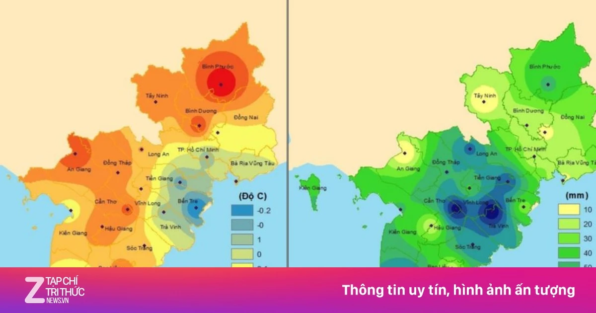 | Bản đồ dự báo nhiệt độ và lượng mưa ở Nam bộ trong tháng 6. Nguồn: Đài Khí tượng Thủy văn Nam bộ và Tây Nguyên. |