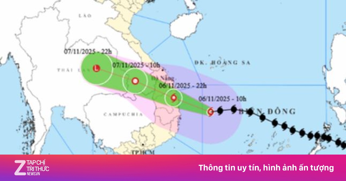 Đến 22h ngày 6/11, bão trên đất liền khu vực từ Quảng Ngãi - Đắk Lắk, sức gió mạnh nhất cấp 13, giật cấp 17, di chuyển theo hướng Tây Tây Bắc với tốc độ 25-30 km/h, đi vào đất liền và suy yếu dần. Khu vực ảnh hưởng là phía Tây khu vực giữa Biển Đông, vùng biển từ Quảng Ngãi đến Đắk Lắk (bao gồm đặc khu Lý Sơn); đất liền phía Đông khu vực từ Quảng Ngãi đến Gia Lai, phía Bắc Đắk Lắk, cấp độ rủi ro thiên tai cấp 4.
