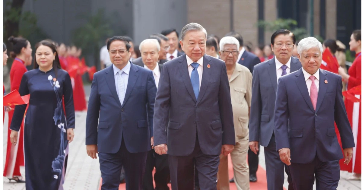 TPO - Sáng 23/9, Đại hội đại biểu Đảng bộ Mặt trận Tổ quốc, các đoàn thể Trung ương lần thứ I, nhiệm kỳ 2025 - 2030, tổ chức phiên trọng thể. Tổng Bí thư Tô Lâm, Thủ tướng Chính phủ Phạm Minh Chính, Thường trực Ban Bí thư Trần Cẩm Tú cùng nhiều đồng chí lãnh đạo, nguyên lãnh đạo Đảng, Nhà nước dự đại hội.
