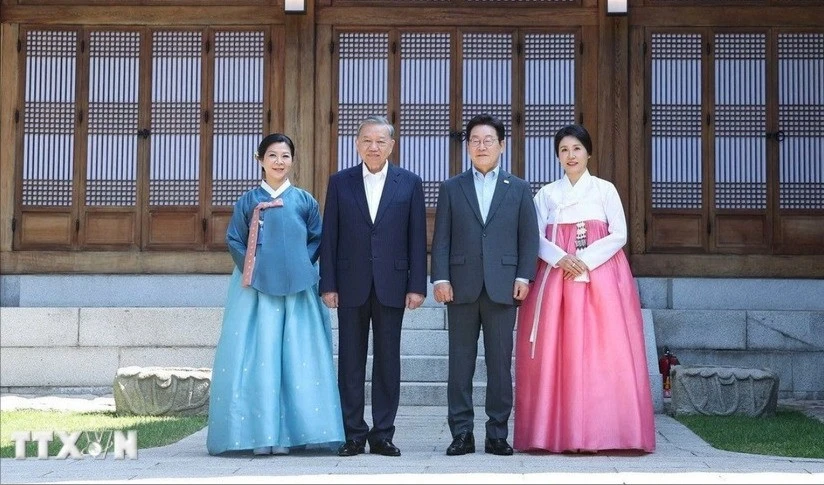 TPO - Sáng nay (12/8), tại Nhà Xanh ở thủ đô Seoul, Tổng Bí thư Tô Lâm và Phu nhân cùng Tổng thống Hàn Quốc Lee Jae Myung và Phu nhân dự tiệc trà và thưởng thức biểu diễn nghệ thuật truyền thống của hai nước.