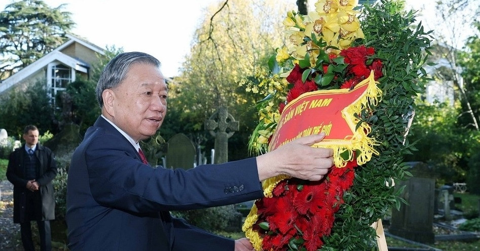 Trong khuôn khổ chuyến thăm chính thức Liên hiệp Vương quốc Anh và Bắc Ireland, sáng 28/10 (giờ địa phương), Tổng Bí thư Tô Lâm và phu nhân Ngô Phương Ly cùng Đoàn đại biểu cấp cao Việt Nam đã đến viếng mộ Lãnh tụ giai cấp vô sản Karl Marx, tại nghĩa trang Highgate, thủ đô London.