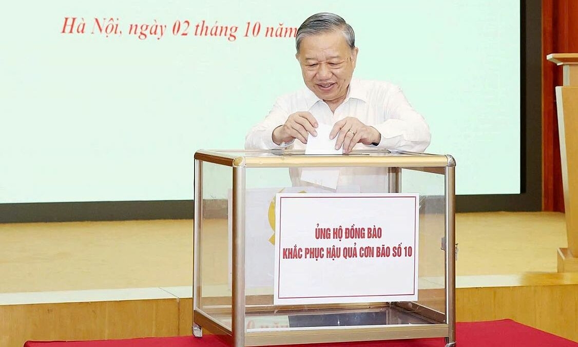 Tổng Bí thư Tô Lâm cùng ông Nguyễn Văn Nên, Thường trực Tiểu ban Văn kiện Đại hội 14 của Đảng và tập thể Văn phòng Trung ương Đảng đã ủng hộ ít nhất mỗi người một ngày lương cho đồng bào bị ảnh hưởng bởi bão Bualoi.