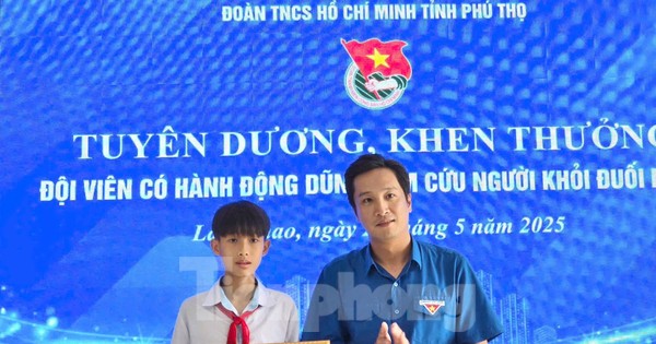 TPO - Ngày 28/5, Tỉnh Đoàn Phú Thọ đã trao bằng khen cho em Đặng Tuấn Hưng (đội viên lớp 8A3, Trường THCS Cao Xá, huyện Lâm Thao, tỉnh Phú Thọ) đã có hành động dũng cảm lao mình xuống dòng nước chảy xiết cứu bạn.