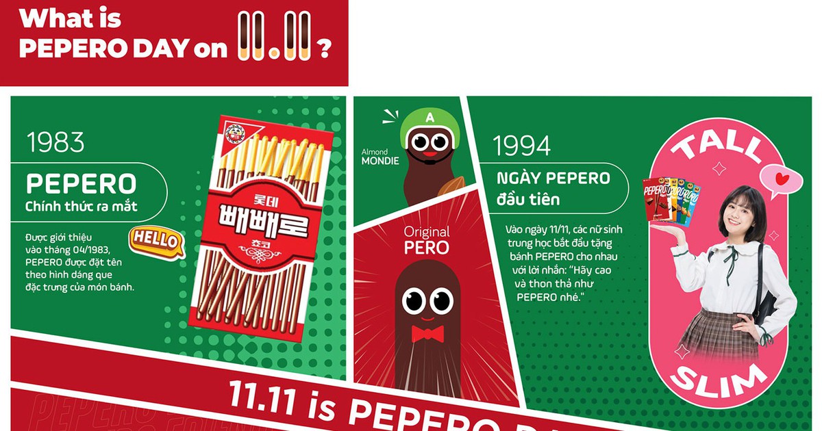 Ngày 11.11 hằng năm, khi đường phố Seoul rực rỡ hình ảnh những hộp bánh que phủ sô-cô-la, giới trẻ Hàn Quốc và fan K-culture khắp thế giới đều hiểu rằng đó chính là PEPERO Day, ngày lễ ngọt ngào gắn liền với thương hiệu bánh que nổi tiếng PEPERO.