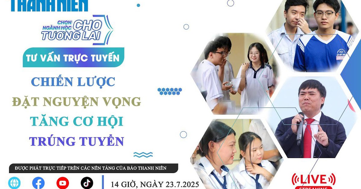 Ngày 23.7.2025, Báo Thanh Niên tổ chức chương trình tư vấn truyền hình trực tuyến với chủ đề: “Chọn ngành học cho tương lai - Chiến lược đặt nguyện vọng tăng cơ hội trúng tuyển". Chương trình được trực tuyến tại địa chỉ: thanhnien.vn, fanpage Facebook, kênh YouTube, TikTok Báo Thanh Niên.