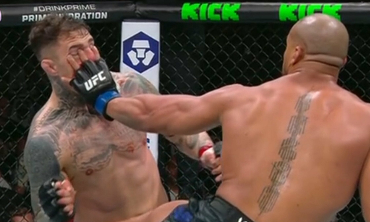 Aspinall không thể tiếp tục thi đấu sau khi bị Ciryl Gane chọc vào mắt phải, trong pha đổi đòn ở 4 phút 35 giây của hiệp một. Võ sĩ người Anh được cho 5 phút để hồi phục nhưng vẫn không thể nhìn thấy gì. Trọng tài Jason Herzog buộc phải dừng trận tranh đai hạng nặng (từ 93,4 đến 120,2 kg), còn Aspinall được đưa ngay đến bệnh viện.