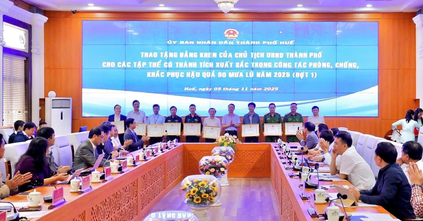 Ngày 5/11, UBND TP. Huế tổ chức khen thưởng, tặng Bằng khen cho 12 tập thể có thành tích xuất sắc trong công tác phòng, chống và giúp dân khắc phục hậu quả mưa lũ năm 2025; Viettel Huế là đại diện duy nhất lĩnh vực viễn thông.
