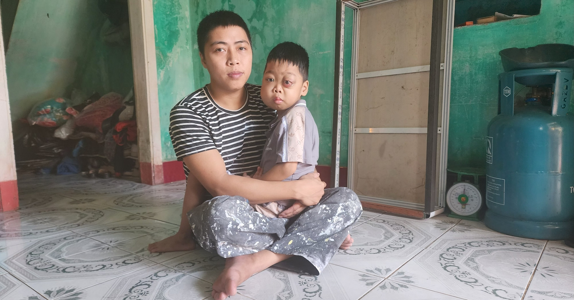 Anh làm thợ sơn, chị Hoàng Thị Phương Thảo (SN 2002, vợ anh Đông) làm công nhân may, thu nhập bấp bênh, không đủ trang trải cuộc sống. Dù vậy, hai vợ chồng vẫn cố gắng làm lụng, nuôi hai con nhỏ là Võ Hoàng Anh (SN 2019) và Võ Hoàng Phúc (SN 2023), với ước mong cho con một tương lai tươi sáng hơn.