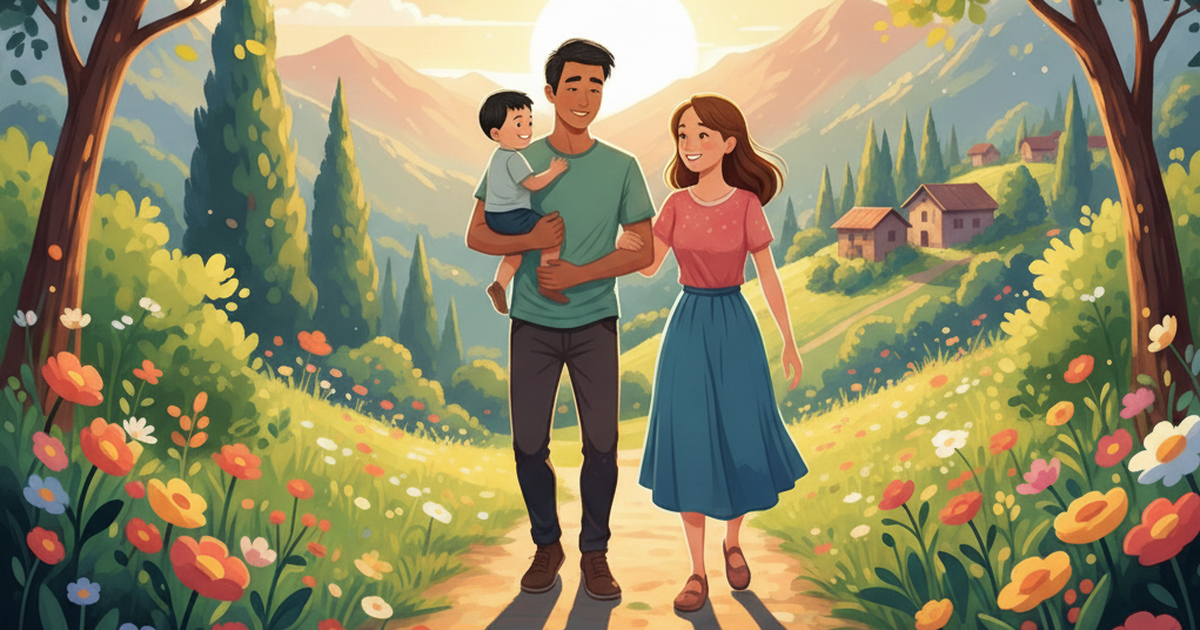 Chiếc xe đỗ xịch trước cổng chợ. Người đàn ông cao lớn, nước da rám nắng bận quân phục với nụ cười rạng rỡ bước xuống. Hùng Sơn chạy sà vào lòng anh. Cậu bé dụi mái tóc đen nhánh vào lòng Dũng, hít hà mùi mồ hôi quen thuộc trên vai áo anh. Dũng ôm lấy Hùng Sơn giơ lên cao quay tít. Tiếng cười giòn tan của hai cha con loang ra tan vào trong nắng.