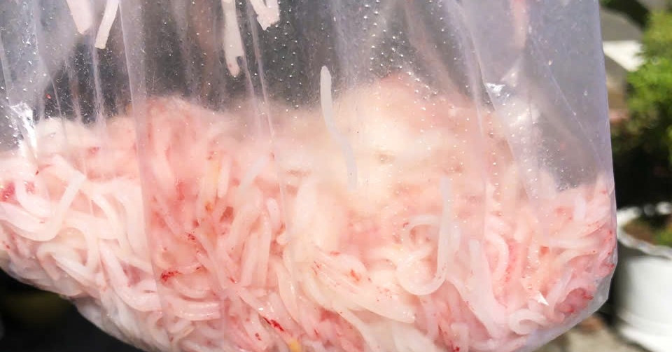Tuy nhiên, đến khoảng 21h tối cùng ngày, bà phát hiện nhiều sợi bún chuyển sang màu đỏ, mềm và hơi ướt. Đến sáng 7/7, toàn bộ phần bún còn lại đều đổi màu. Đáng chú ý, khi thả bún vào nước lọc, nước cũng đổi màu đỏ.