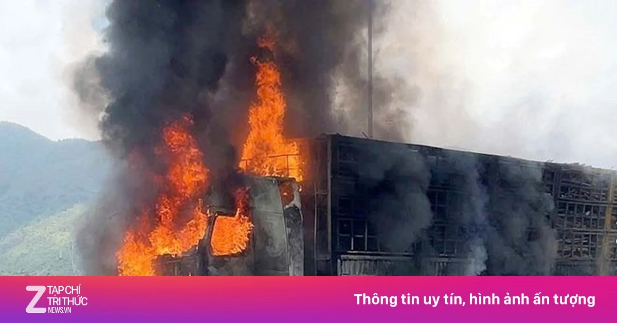 Đang lưu thông trên cao tốc Vũng Áng - Bùng đoạn qua xã Kỳ Hoa, tỉnh Hà Tĩnh, xe đầu kéo bất ngờ bốc cháy dữ dội.