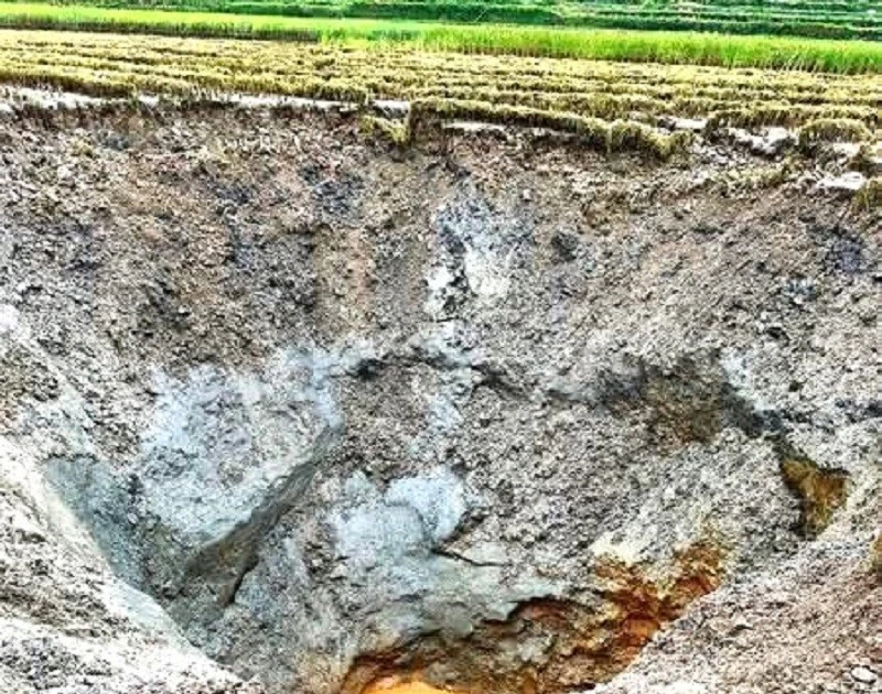 Xuất hiện hố rộng 100m2, sâu hoắm giữa cánh đồng ở Tuyên Quang