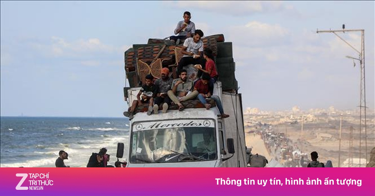 Người dân Palestine sơ tán tránh xung đột khỏi khu vực al-Nuseirat, miền Trung Dải Gaza, ngày 25/9/2025. Ảnh: THX/TTXVN. |