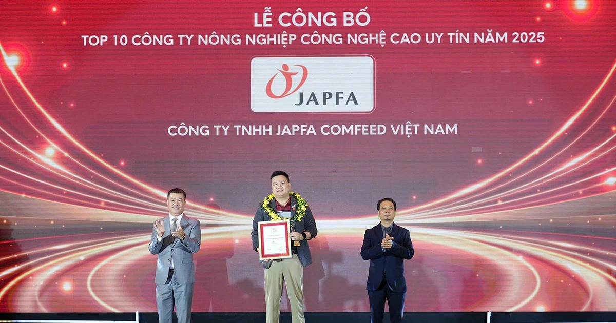 Ngày 28.10, Công ty TNHH Japfa Comfeed Việt Nam (Japfa Việt Nam) được vinh danh trong Top 10 Công ty Nông nghiệp công nghệ cao uy tín năm 2025. Giải thưởng là sự ghi nhận cho hành trình 30 năm nỗ lực đồng hành cùng nông dân Việt Nam, đồng thời khẳng định vị thế tiên phong trong phát triển nông nghiệp hiện đại và bền vững.