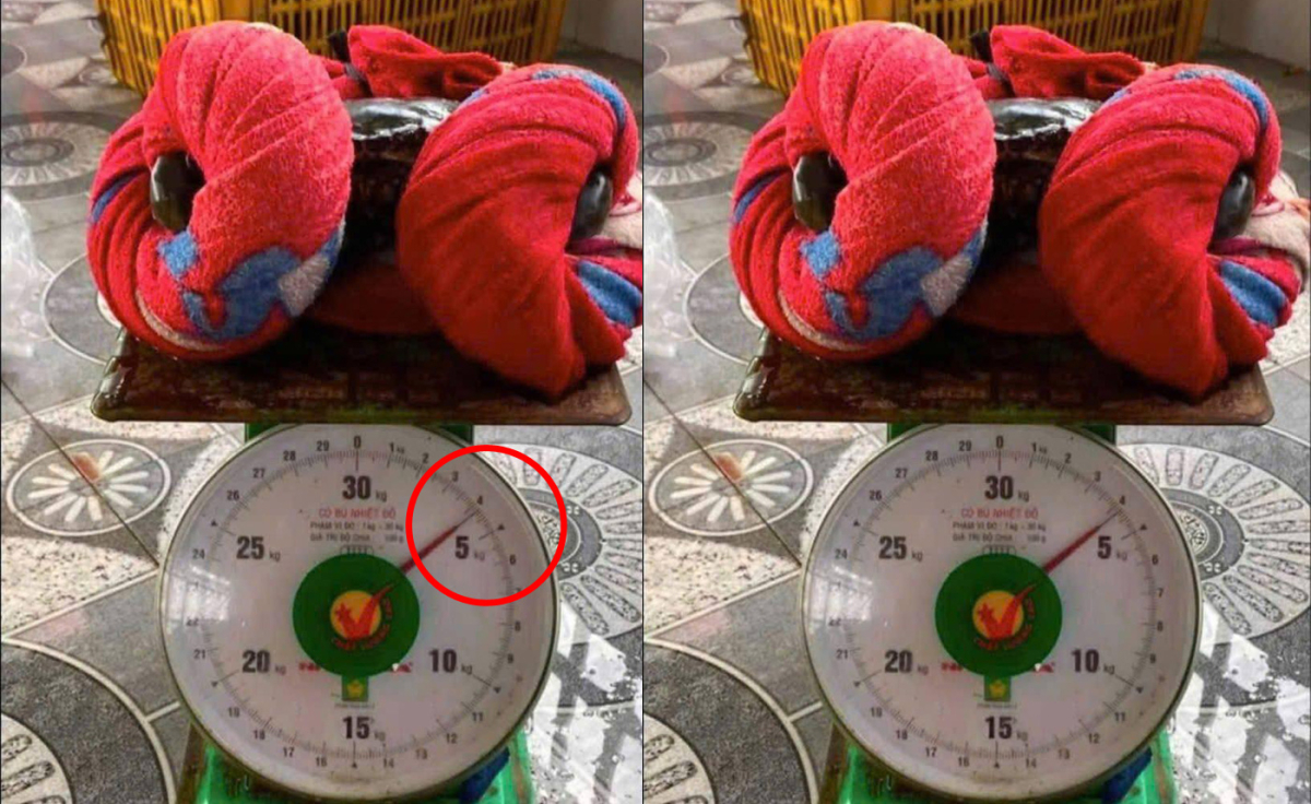 Đã bao giờ bạn nghe đến chương trình khuyến mãi "mua chăn tặng cua biển" chưa? Nếu chưa thì bức ảnh này chính là minh chứng sống động. Thoạt nhìn, ai cũng tưởng là một cuộn chăn đỏ đang được đem cân thử. Nhưng khi nhìn kỹ, hóa ra bên trong lại là một chú cua biển được quấn chặt.