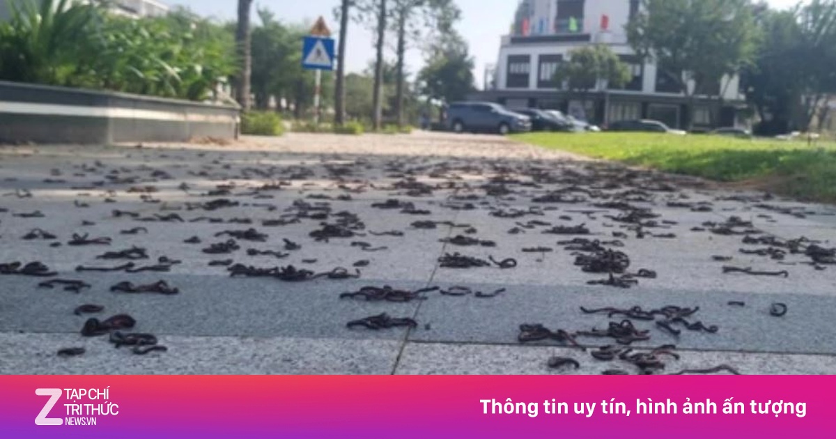 Hàng nghìn con giun đất bò lên vỉa hè, nằm cuộn thành từng mảng rồi chết khô khiến nhiều người kinh hãi.
