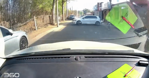 Theo camera hành trình trên ô tô con, khi chiếc xe này di chuyển trên một con phố nhỏ thì phía trước có một chiếc hatchback màu trắng đang quay đầu. Tuy nhiên, tài xế lại có vẻ lúng túng, không căn được không gian và húc trúng cột điện bằng bê tông ở rìa đường.