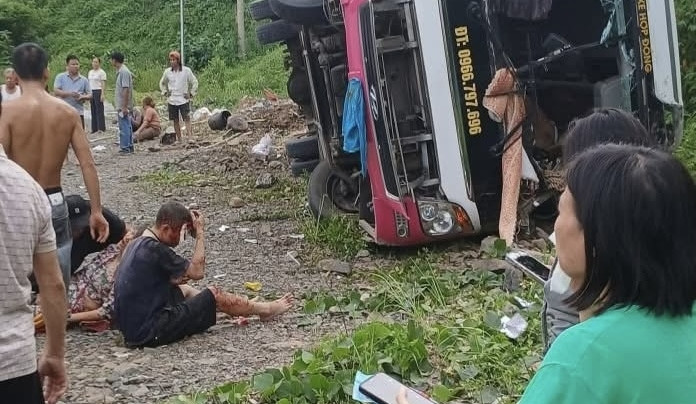 Thời điểm xảy ra tai nạn, xe khách loại 29 chỗ di chuyển theo hướng Sơn La - Hà Nội, khi đến khu vực nêu trên thì bị lật.