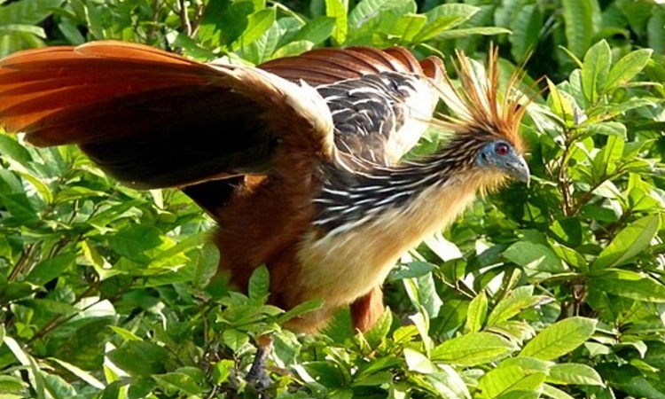 Gà móng hoang dã (Opisthocomus hoazin) sống ở lưu vực sông Amazon và Orinoco ở Nam Mỹ, thường được coi là một trong những loài kỳ lạ nhất thế giới, theo Live Science. Nó chào đời với đôi cánh có móng vuốt, một đặc điểm tiền sử hiếm gặp và khi trưởng thành phát ra mùi khó ngửi do hệ thống tiêu hóa lên men thức ăn.