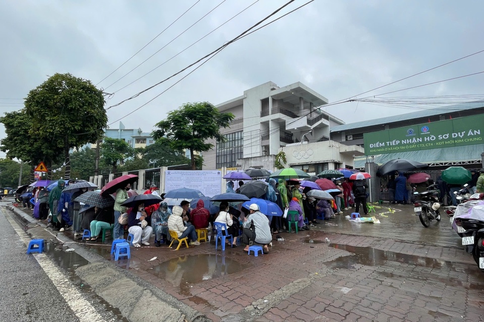 Người dân xếp hàng dài chờ nộp hồ sơ mua nhà ở xã hội tại Hà Nội. Ảnh: Thủy Tiên. |