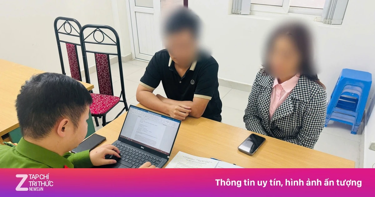 Bà N.T.Q.H. (chủ cơ sở) và ông T.T.A. (người trông nhà) làm việc tại cơ quan công an. Ảnh: Công an cung cấp. |