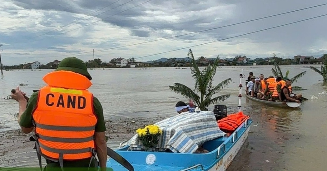 Trước tình huống khẩn cấp này, lực lượng Công an xã Đức Minh đã phối hợp với gia đình, dùng xuồng máy để đưa thi thể cụ bà đi hỏa táng, hoàn tất hậu sự trong điều kiện lũ lụt chia cắt.