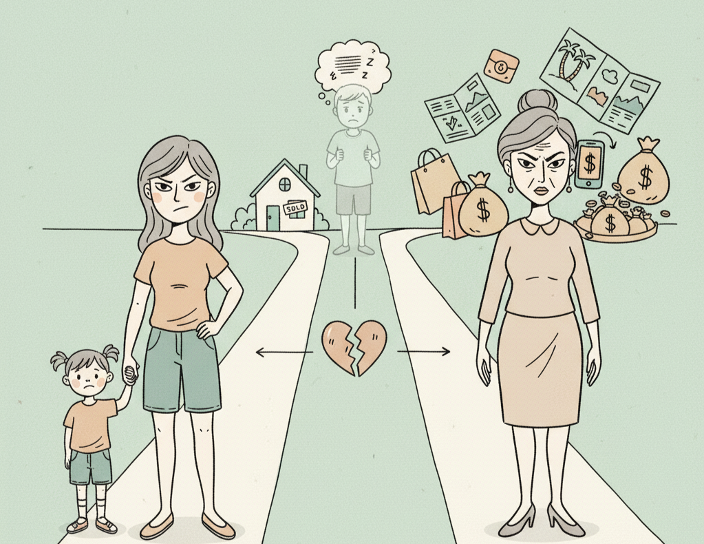 Vợ chồng tôi kết hôn được 5 năm, có một đứa con gần bốn tuổi. Chúng tôi làm công ty gần ba mẹ tôi, thu nhập ổn định, đang trả nợ tiền ngân hàng và ba mẹ, chị em phía tôi do mới mua đất. Mẹ chồng tôi người Bắc, ngoài 50 tuổi, công chức lương 13-14 triệu đồng mỗi tháng. Trước đây, ba mẹ chồng ở chung với ông bà nội, được ông bà bao lo mọi thứ, đất đai, nhà cửa có sẵn, chi tiêu hàng tháng ông bà trợ cấp. Ông bà mất cách đây 5 năm. Chồng tôi từ ngày ra trường đi làm, lại gửi về rất nhiều tiền, khoảng hai tỷ đồng.