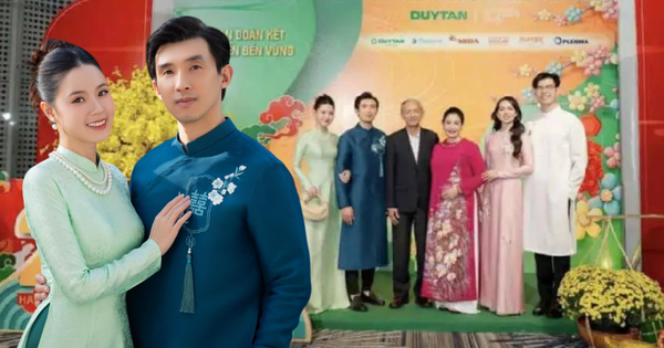 Hình ảnh được ghi lại khi vợ chồng Midu cùng với ba mẹ chồng, em trai - em dâu có mặt tại một sự kiện của Công ty CP Nhựa tái chế Duy Tân vào đầu năm mới 2025.