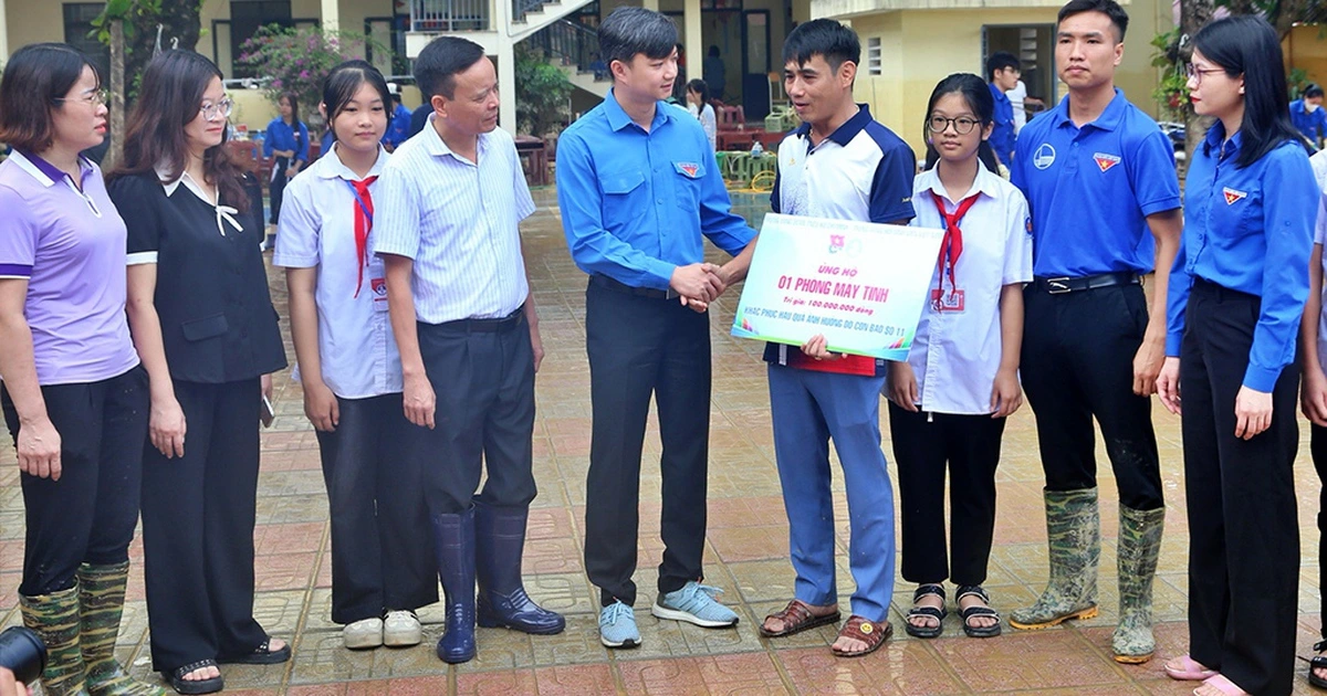 * Cùng ngày, đoàn công tác của Ban Bí thư T.Ư Đoàn do anh Nguyễn Minh Triết, Bí thư T.Ư Đoàn, Chủ tịch Hội Sinh viên VN, dẫn đầu đã đến thăm, tặng quà, động viên các đoàn viên, thanh niên, học sinh tại Trường THCS Chùa Hang 1 và Trường tiểu học Quang Vinh, tỉnh Thái Nguyên.