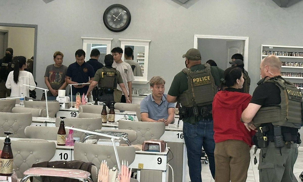 Các đặc vụ Cục Điều tra An ninh Nội địa (HSI) thuộc Cơ quan Thực thi Di trú và Hải quan Mỹ (ICE) ngày 4/6 khám xét tiệm nail Luxx Nail Lounge ở thành phố Marietta, bang Georgia, bắt 12 người nhập cư không giấy tờ với cáo buộc làm việc tại Mỹ trái phép.