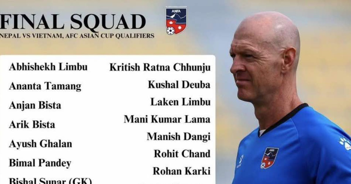 Đội tuyển Nepal đã chốt xong danh sách chính thức cho 2 trận gặp Việt Nam (ngày 9 và 14.10) tại vòng loại Asian Cup 2027, diễn ra tại TP.HCM.