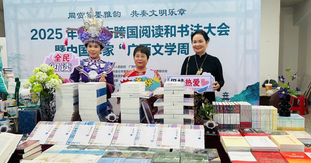 Trong nhiều hoạt động mà đoàn Việt Nam tham dự, ấn tượng thật sâu đậm trong tôi là Ngày hội đọc sách quốc tế và thư pháp Sùng Tả năm 2025 tổ chức tại Trường cao đẳng Sư phạm Sùng Tả (vào tối 8.7) được phát sóng trực tiếp trên kênh truyền hình TP.Sùng Tả.