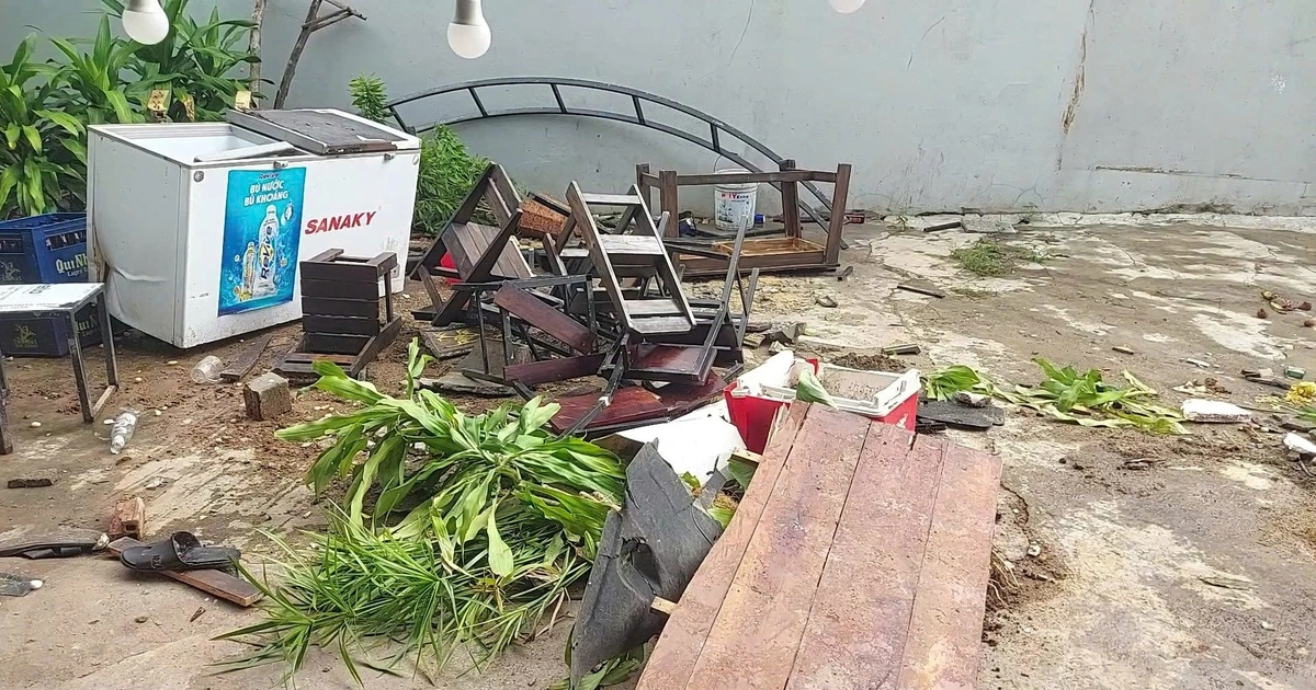 Theo ghi nhận của PV Thanh Niên, hiện trường vụ ô tô lao vào quán nhậu vẫn còn ngổn ngang. Bàn ghế đổ vỡ, ba trụ sắt chống mái che bị gãy gập, nhiều vật dụng hư hỏng. Trên nền xi măng, những vệt bánh xe chà xát tạo thành các đường trắng xóa kéo dài từ ngoài cửa vào sâu trong quán.