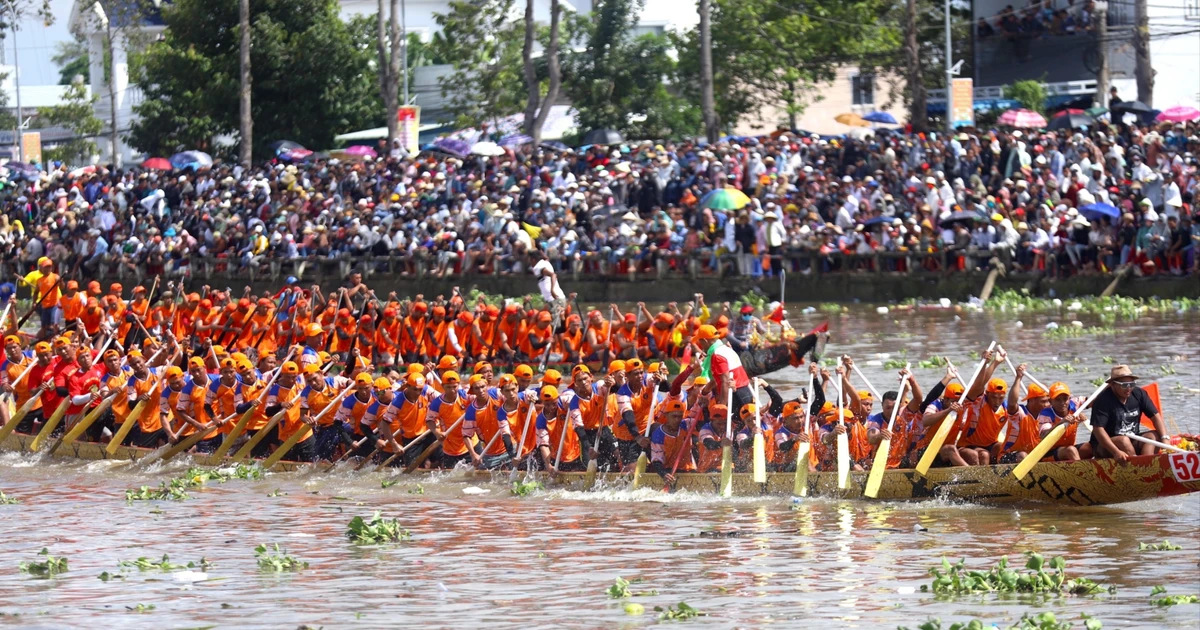 TPO - Trưa 4/11, trên sông Maspéro (phường Sóc Trăng, TP. Cần Thơ), hàng nghìn người dân và du khách háo hức theo dõi màn đua tốc độ của 61 đội ghe ngo nam, nữ đến từ nhiều địa phương vùng Đồng bằng sông Cửu Long. Để theo dõi gần hơn màn đua ghe, nhiều người dân, du khách không ngần ngại lội cả xuống sông, ngâm mình trong nước.