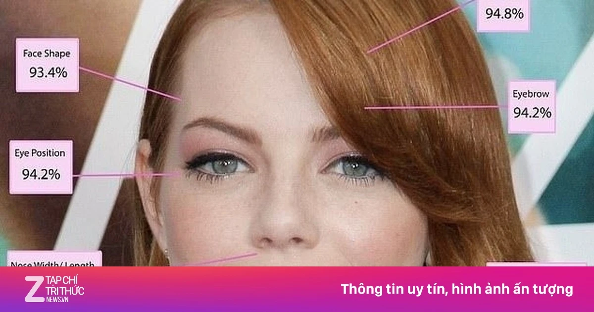 Theo Daily Mail, Emma Stone dẫn đầu danh sách phụ nữ đẹp nhất thế giới với gương mặt đạt độ chính xác 94,72% so với tỷ lệ vàng.