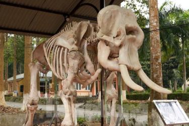 TPO - Tiêu bản 2 bộ xương voi được Vườn quốc gia Pù Mát (huyện Con Cuông, Nghệ An) trưng bày ngay mặt tiền khuôn viên