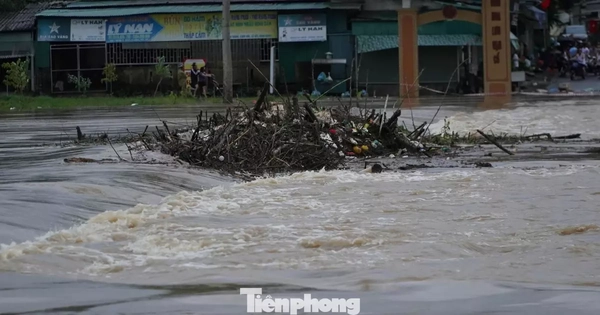 Nước lũ cuồn cuộn đổ về, cầu ngập sâu cả mét